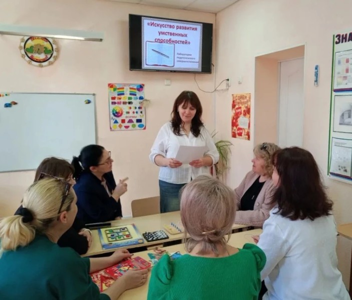Лаборатории педагогического совершенствования 17 марта 2026 «Искусство развития умственных способностей» по такой проблеме 14.03.2026 года прошла очередная встреча в Лаборатории педагогического совершенствования. С педагогическими стратегиями и технологиями развивающего обучения познакомила коллег педагог дополнительного образования Арутюнян Марине Врежовна. Она поделилась опытом работы по использованию проблемно-поисковых и исследовательских методов, как средств развития мышления. Бойко Татьяна Николаевна педагог дополнительного образования, рассказала о развитии критического мышления у обучающихся на занятиях по декоративно-прикладному творчеству с помощью игровых методов для стимуляции познавательной активности. Про цифровые технологии и их роль в развитии когнитивных навыков у детей школьного возраста рассказала педагог-организатор Ерошенко Н.В. Она познакомила педагогов с образовательными платформами и тренажёрами для тренировки мышления у детей. С психолого-педагогическими аспектами, мотивацией и её ролью в развитии умственных способностей обучающихся рассказала педагог-психолог Третьякова Н.А. Материал подготовила педагог-психолог Третьякова Н.А.
