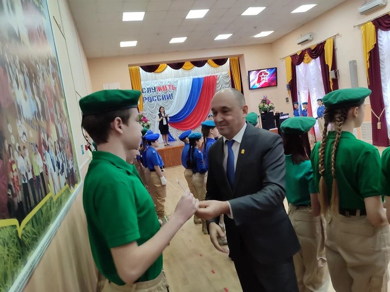 Прием юнармейцев в ряды Тацинского местного отделения "ЮНАРМИЯ" 11 декабря 2025 11 декабря 2025 года в Доме детского творчества прошла торжественная церемония приема юнармейцев в ряды Тацинского местного отделения «ЮНАРМИЯ». Тридцать семь школьников дали торжественную клятву юнармейцев, на верность Отечеству и всему юнармейскому братству, заместителю начальника штаба Тацинского местного отделения Юнармии Сергею Анатольевичу Мельникову. На мероприятии присутствовал глава Администрации Тацинского района Сергей Леонидович Сягайло. Он лично поздравил ребят с вступлением в движение и вручил ребятам знак принадлежности к общественно-патриотическому движению «ЮНАРМИЯ» - «Личную книжку юнармейца». Так же удостоверения юнармейцев вручили: заместитель главы Администрации Тацинского района по вопросам социального развития Елена Григорьевна Накалюжная и Ирина Сергеевна Харламова, заведующий Отделом Образования. Мероприятие прошло в торжественной обстановке, обучающиеся детского объединения «Аллегро» исполнили для всех патриотическую песню «Я-гражданин России». Материал подготовила педагог-психолог Третьякова Н.А.