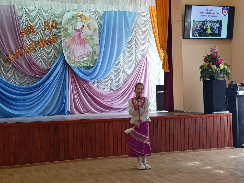 Ай, да казачка! 25 марта 2025 25 марта в доме детского творчества в рамках реализации казачьего компонента состоялась конкурсно – познавательная программа «Ай, да казачка!», в которой приняли участие обучающиеся 9-12 лет из образовательных организаций Тацинского района. Девочки соревновались в трех конкурсных испытаниях таких как: - «Я великого рода частичка», здесь воспитанницы представляли свою визитную карточку; - Конкурс «Как ложкой так и шашкой» представлял собой презентацию казачьих блюд; - «Ведь недаром на Руси славятся все казаки» - все участницы продемонстрировали свои творческие номера. Оценивало участниц компетентное жюри: директор МБОУ ДО ДДТ Гончарова О.В. заместитель Атамана Тацинского казачьего юрта Гасилин К.В., педагог-психолог дома детского творчества Третьякова Н.А. Творческими номерами порадовали всех гостей обучающиеся детских объединений : «Аллегро» (педагог дополнительного образования Днестрянская Е.В.),«Грация» (педагог дополнительного образования Гарная Н.А.), «Шанс»(педагог дополнительного образования Сиротина Е.А.), «Артмикс» (педагог дополнительного образования Исаева Д.А.,) «Фаворит» (педагог дополнительного образования Федосеева А.А.) По итогам конкурса звание «Ай, да казачка!», диплом и кубок получила Забарина Полина из Михайловкой школы, остальные участницы награждены грамотами в различных номинациях и сладкими призами.