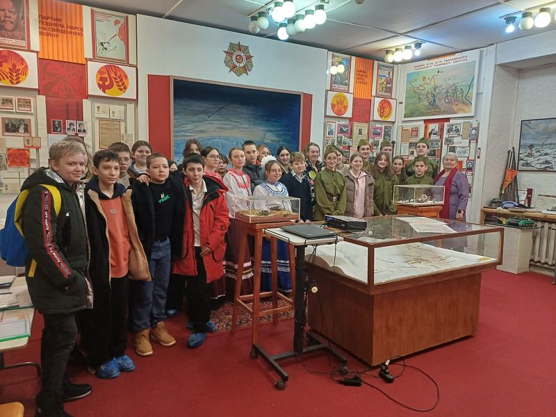 Экскурсия в музей 09 февраля 2024 9 февраля в рамках месячника оборонно-массовой и военно-патриотической работы, с целью развития гражданско-патриотических качеств обучающиеся детского объединения «АртМикс» под руководством педагога дополнительного образования Исаевой Д.А. посетили школьный музей в ст. Скосырской. Встречали ребят экскурсоводы – обучающиеся детского объединения «Лира» дома детского творчества (педагог дополнительного образования Ушакова М.П.). Учащиеся посетили зал «Воинской доблести» узнали о героическом рейде танкистов-бадановцев, воинах 203 и 266 стрелковых дивизий - освободителей села, изучили солдатские письма участников Великой Отечественной войны, дневник солдата, начатый 22 июня 1941 года. Ребята познакомились с интересными экспонатами - это макеты «Сталинградская битва», «Курская дуга», «Бой за хутор Михайловка», диорама «Бой на реке Быстрой».