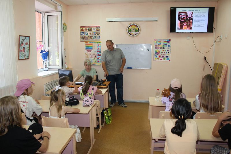 Казачий курень 19 июня 2024 19 июня в доме детского творчества прошел районный казачий всеобуч. Мероприятие было организовано в форме интеллектуальной игры-путешествия, в ней участвовали воспитанники 8-10 лет летних пришкольных лагерей станицы Тацинской. В рамках мероприятия ребята путешествовали по шести различным станциям. На станции «Историческая» методист Бирюкова Е.А. продемонстрировала участникам презентацию и рассказала об истории, быте и традициях донских казаков. На станции «Литературная» методист Юрова Г.И. рассказала ребятами об известных донских литературных деятелях и литературных произведениях, ребята отгадывали загадки о казаках, угадывали современное значение старинных казачьих слов. На станции «Интеллектуальная» методист Рыбалкина Н.А. и педагог допобразования Исаева Д.А. в рамках проведения интеллектуальной викторины «Знатоки донского края» тестировали ребят на знание истории, литературного наследия, достопримечательностей, растительного и животного мира Донского края. Педагоги Третьякова Н.А. и Арутюнян М.В. на игровой станции рассказали о казачьих дворовых играх, после чего провели для ребят некоторые из них:«Колечко», «Чехарда», «Городки», «Прыгалка через веревку» и др. На музыкальной станции педагоги допобразования Петрова Н.А. и Мельниченко С.Н. рассказали детям о песнях и плясках донских казаков, послушали в записи казачьи песни, затем разучили с ребятами несколько основных танцевальных движений. Педагог Якушева Е.В. на станции «Художественная» рассказала ребятам об известных донских художниках, их картинах, после чего каждая команда нарисовала мелом на асфальте «Казачий курень и подворье». В завершении путешествия команды пришкольных лагерей были награждены грамотами за активное участие в мероприятии.