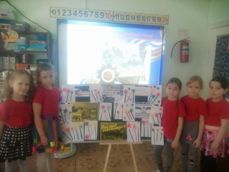 Мероприятие посвященное 81-ой годовщине освобождения Ростовской области 15 февраля 2024 В детском объединении «Юный эколог Дона» на базе детского сада «Колокольчик» прошло мероприятие посвященное 81-ой годовщине освобождения Ростовской области от немецко-фашистских захватчиков. В старшей группе была организована выставка рисунков «Дороги войны глазами детей», в подготовительной группе прошло познавательное мероприятие «Был под Ростовом сломлен враг».