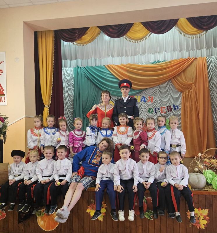 Осенний праздник в Школе раннего развития "Волшебница осень" 21 октября 2025 В Школе раннего развития 18 октября прошел осенний праздник «Волшебница осень» для дошкольников. На праздник к ребятам пришла донская Осень, для которой ребята рассказали свои стихи, помогли собрать урожай и спели песни «Золотая осень» , «Урожайная». Сюрпризом стало для обучающихся появление домовенка Прошки и лентяя-лежебоки, юного казачка, которые вместе с ребятами играли в народные игры и станцевали веселый танец «По лужам». Кадет тацинского казачьего техникума Третьяков А.В., проверил физическую подготовку юных казачат, показал фланкировку шашкой, поиграл в игру «Передай скорее шашку», поздравил всех с прошедшим праздником «Покровом Пресвятой Богородицы». В конце праздника Осень угостила всех ребят своими дарами яблоками и грушами. Материал подготовила педагог-психолог Третьякова Н.А.