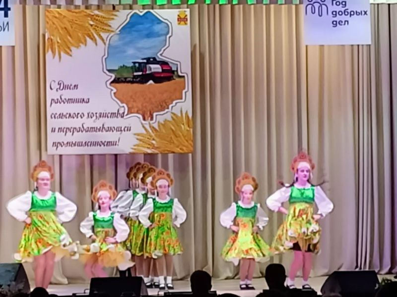 Праздничный концерт посвященный Дню сельского хозяйства и перерабатывающей промышленности 18 ноября 2024 В районном доме культуры 15 ноября состоялся праздничный концерт, посвященный Дню сельского хозяйства и перерабатывающей промышленности. В праздничной программе приняли участие коллективы дома детского творчества. Продолжая многолетние традиции, в этот день в малом зале РДК была организована выставка декоративно-прикладного творчества. Обучающиеся детских объединений «Волшебница» (педагог дополнительного образования Бойко Т.Н.), «Радуга» (педагог дополнительного образования Мельниченко С.Н.), «Мир фантазии» (педагог дополнительного образования Савицкая Н.В.), «Юный художник» (педагог дополнительного образования Бочарова Я.Т.), «Спутник» (педагог дополнительного образования Гасилин К.В.) представили различные поделки: картины, композиции, букеты полевых цветов, куклы в казачьих костюмах, приуроченные к праздничной дате. Выставка поделок привлекла внимание гостей праздника - Харченко А.В., депутата Законодательного Собрания Ростовской области, посетившего в этот день наш район, Сягайло С.Л., главы Администрации Тацинского района, глав сельских поселений района и многих других. В рамках концертной программы на сцене зрители увидели выступления обучающихся детских объединений «Эдельвейс» (руководитель - педагог дополнительного образования Музычук С.И.), «Грация» (педагог дополнительного образования Гарная Н.С.), «Шанс» (педагог дополнительного образования Сиротина Е.А.), «Фиеста» (педагог дополнительного образования Петрова Н.А.) и «Фаворит» (педагог дополнительного образования Федосеева А.А.).