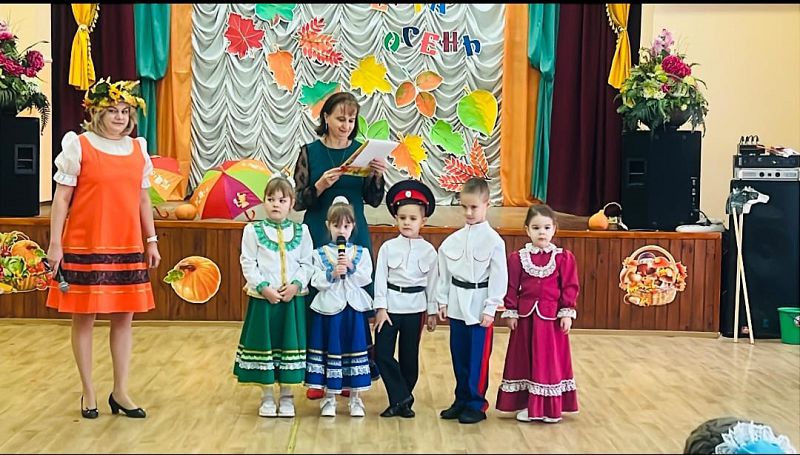 Праздник "Щедрая осень" 24 октября 2024 В Школе раннего развития в соответствии с планом воспитательной работы прошел праздник "Щедрая осень", подготовленный педагогами дома детского творчества. На праздник к ребятам пришли грозная Туча и красавица Осень. Они поиграли с детьми в казачьи игры, провели эстафеты и подарили сладости. Ребята для Осени спели песню, станцевали и рассказали стихи – продемонстрировали чему научились в школе раннего развития.