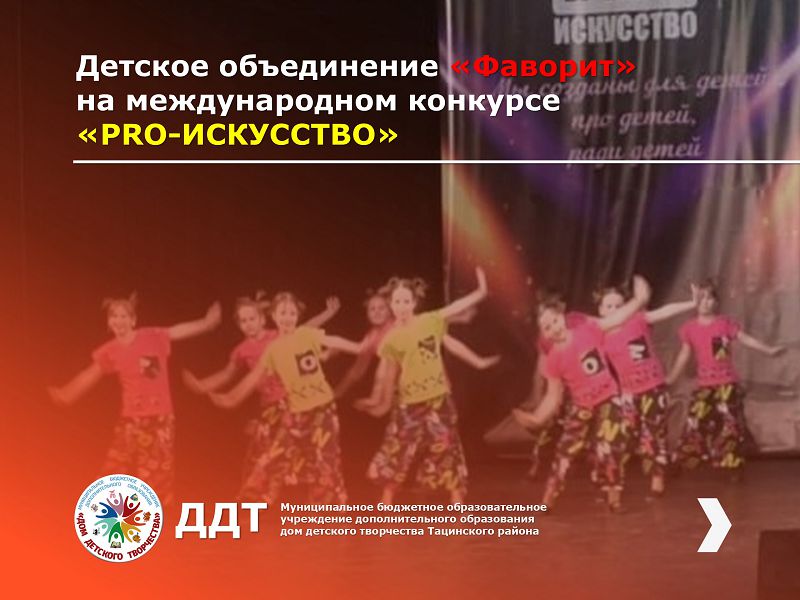 «PRO-ИСКУССТВО» 10 февраля 2025 9 февраля 2025 года обучающиеся детского объединения «Фаворит» под руководством педагога дополнительного образования Федосеевой Анны Александровны приняли участие в международном конкурсе «PRO-ИСКУССТВО» в г. Ростове-на-Дону. Организаторы конкурса провели его в целях выявления и поддержки талантливых и перспективных детей, обмена опытом между коллективами, руководителями и педагогами, поддержки постоянных творческих контактов между ними. Конкурс проходил по различным номинациям: хореография, вокальное искусство, инструментальное искусство, театральное искусство, художественное чтение, конферансье (ведущий), театр моды, вокально-инструментальное исполнительство. Коллектив «Фаворит» дома детского творчества представил в номинации «хореография», в возрастной категории 10-14 лет, танцы «Прилипалки» и «Кнопочки». В данной номинации конкурса приняли участие 15 коллективов, 73 конкурсных номера. Профессиональное жюри конкурса оценивало: музыкальное сопровождение, исполнительское мастерство – техника исполнения движений, артистизм, раскрытие художественного хореографического образа. Синхронность, композиционное построение танца, соответствие репертуара возрастным особенностям исполнителей. Обучающиеся детского объединения «Фаворит» неоднократно принимали участие в различных конкурсах, вот и в этот раз по достоинству были приняты зрителями и жюри. За танец «Кнопочки» коллектив удостоен диплома лауреатов 3 степени, «Прилипалки» — дипломанты 1 степени. Материал подготовила методист МБОУ ДО ДДТ Бирюкова Е. А.