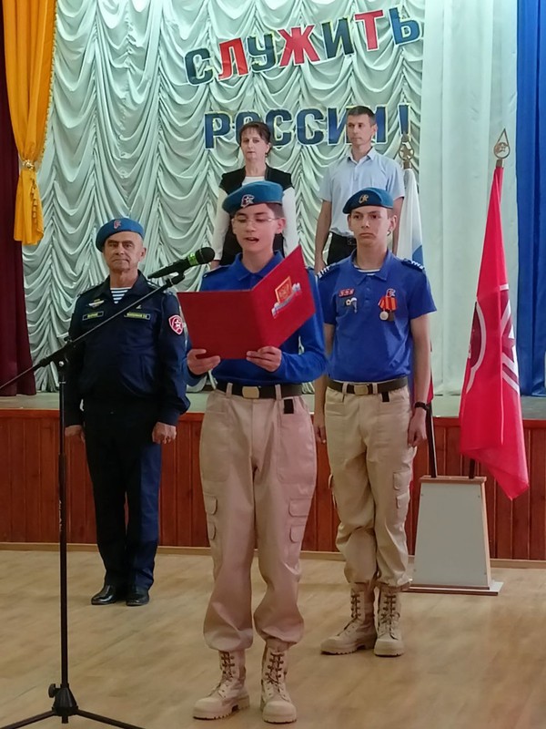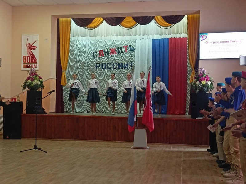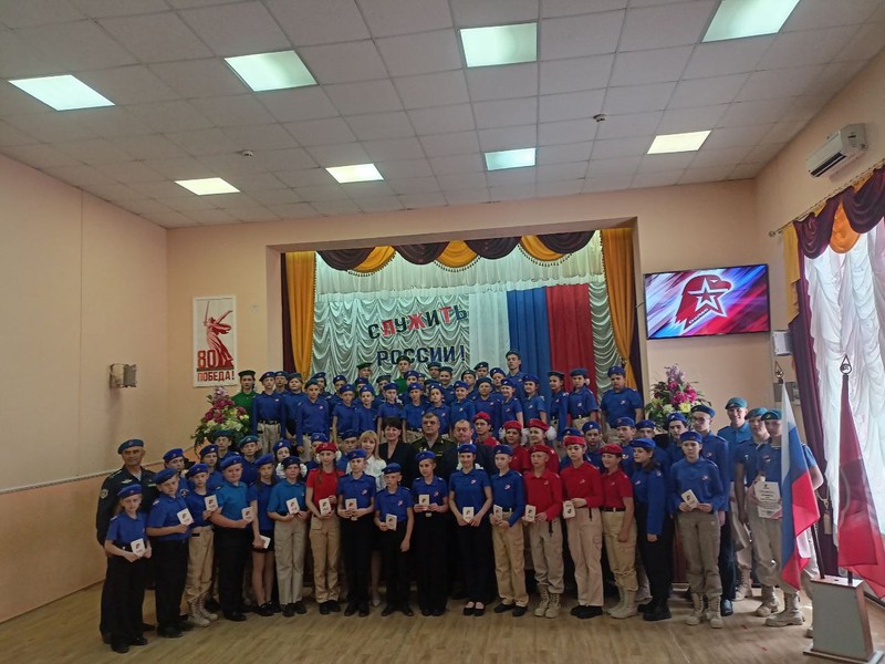 Служить России 28 мая 2025 В доме детского творчества 28 мая прошел торжественный прием в ряды Тацинского местного отделения «Юнармии». Клятву приняли и стали юнармейцами 70 девчонок и мальчишек из 13 общеобразовательных учреждений района. В мероприятии с концертными номерами выступили воспитанники дома детского творчества. Обучающиеся детских объединений «АртМикс» (педагог дополнительного образования Исаева Д.А.) и «Фиеста» (педагог дополнительного образования Петрова Н.А.) представили постановку «Свеча памяти», посвященную 80-летию Победы в Великой Отечественной войне, «Аллегро» (педагог дополнительного образования Днестрянская Е.В.) – песню «Я – гражданин России!».