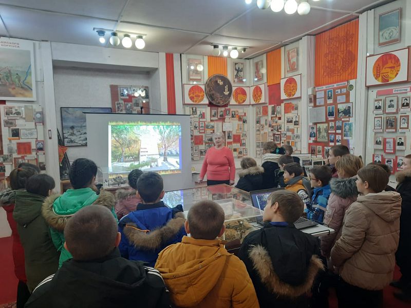 Урок мужества «Сталинградская битва» 15 февраля 2024 В детском объединении «Лира» дома детского творчества обучающиеся занимаются активной поисковой, исследовательской, краеведческой работой. Полученные сведения, материалы обучающиеся используют в подготовке различных мероприятий для школьников района на базе музея МБОУ Скосырской СОШ. В период месячника оборонно-массовой и военно-патриотической работы педагог дополнительного образования Ушакова М.П и обучающиеся детского объединения «Лира» провели урок мужества «Сталинградская битва» для обучающихся МБОУ Крюковской СОШ и обзорную экскурсию по залам школьного музея. 14 февраля 2024 года для обучающихся 2-5 классов МБОУ Скосырской СОШ проведено мероприятие, посвященное освобождению от немецко-фашистских захватчиков г. Ростова–на-Дону.