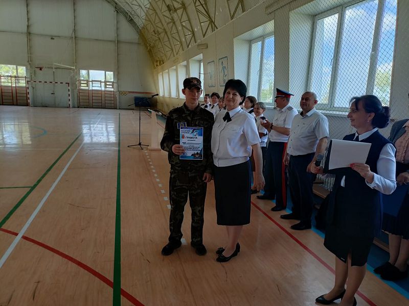 Военно-спортивная игра «Казачий сполох» 23 апреля 2024 23 апреля в спорткомплексе «Триумф» Тацинской СОШ №1 прошла районная военно-спортивная игра «Казачий сполох», посвященная 100-летию Тацинского района. С приветственным словом к участникам мероприятия обратилась Харламова И.С., заведующий Отделом образования Администрации Тацинского района. Она отметила важность военно-спортивной подготовки для будущего защитника Отечества. Перед отрядами выступил настоятель храма Рождества Пресвятой Богородицы ст. Тацинской, иерей Ростислав Сагинашвили, он призвал защищать и сохранять христианские ценности. В мероприятии участвовали Бударин С.А., заместитель атамана Тацинского юрта, Колмычков В.Л., начальник Тацинского учебного центра ДОСААФ, Калугин Г.Н., директор Тацинской детско-юношеской спортивной школы, преподаватели - организаторы ОБЖ и руководители образовательных организаций, кадеты Тацинского кадетского казачьего техникума, казаки Тацинского юрта. В соревнованиях приняли участие 16 команд юношей из 16 общеобразовательных учреждений района со статусом «казачье». Команды прошли 7 этапов соревнований: прохождение торжественным маршем казачьих отрядов; стрельба из пневматической винтовки; неполная сборка - разборка макета автомата Калашникова; действия в чрезвычайных ситуациях; спортивная эстафета; подтягивание на перекладине; военно-историческая викторина «Ратные подвиги казаков России», посвященная 100-летию со дня образования Тацинского района». Призерами в общем зачете стали: 1 место – отряд «Донцы» МБОУ Тацинской СОШ №1; 1 место – отряд «Казаки» МБОУ Скосырской СОШ; 2 место – отряд «Гвардейцы Дона» МБОУ Тацинской СОШ №2; 3 место – отряд «Заря» МБОУ Жирновской СОШ; 3 место – отряд «Казачья сотня» МБОУ Углегорская СОШ. Призерами в личном зачете стали: в стрельбе из пневматической винтовки: 1 место – Ясырев Алексей, МБОУ Тацинская СОШ №2; 2 место – Вербин Максим, Углегорская СОШ; 3 место - Кузнецов Николай, Скосырская СОШ; в неполной разборке-сборке автомата Калашникова: 1 место – Пилов Владислав, МБОУ Суховская СОШ; 2 место – Московкин Александр, МБОУ Углегорская СОШ; 3 место – Греков Сергей, МБОУ Ермаковская СОШ. Лучший результат в подтягивании на перекладине показали: 23 раза - Козинов Глеб (МБОУ Тацинская СОШ №1); 20 раз – Курбанов Рабадан (МБОУ Суховская СОШ). Лучший результат в военно-исторической викторине «Ратные подвиги донских казаков» показал Чернышков Кирилл (МБОУ Скосырская СОШ) – ответил правильно на все 10 вопросов и набрал 10 баллов из 10 возможных. Перед участникам мероприятия выступили обучающиеся дома детского творчества с танцем «Казаченька» (детское объединение «Эдельвейс», руководитель С.И. Музычук), с показательным выступлением по фланкировке шашкой - Д.Н. Белкин, учитель физической культуры Михайловской СОШ.