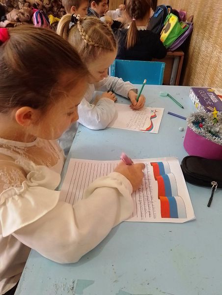 Воспитательные беседы и мероприятия, посвящённые подвигу героев ВОВ и СВО 18 декабря 2024 С целью формирования гражданско-патриотических качеств у обучающихся, в детском объединении "Кудесники" на базах Быстрогорской и Михайловской школ прошли воспитательные беседы и мероприятия, посвящённые подвигу героев ВОВ и СВО. Дети высказывали своё мнение и рассуждали, что такое подвиг, сила духа, защитник Родины. В поддержку военнослужащих СВО детьми выполнены поздравительные новогодние открытки и написаны письма со словами поддержки.