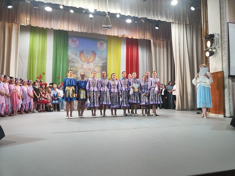 Всероссийский конкурс - фестиваль народного творчества «Сказка рядом» 02 июня 2025 31 мая 2025 года обучающиеся детских объединений «Эдельвейс», «Аллегро» дома детского творчества приняли участие во Всероссийском конкурсе - фестивале народного творчества «Сказка рядом» в г. Каменск-Шахтинский. Конкурс - фестиваль проводил Центр "Благода" по следующим номинациям: вокал, хоровое пение, хореография, инструментальное исполнительство, художественное слово, театральное творчество. В нем приняли участие более 200 исполнителей. Наши участники вместе с педагогами подготовили творческие номера, которые по достоинству оценило жюри конкурса. Обучающиеся детского объединения «Эдельвейс» (педагог дополнительного образования Музычук С.И.) за исполнение танцевальных номеров получили следующие награды: за танец «Танцуй со мной» диплом лауреатов 2 степени, за танец «Казачья пляска» диплом лауреатов 3 степени. Обучающиеся детского объединения «Аллегро» (педагог дополнительного образования Днестрянская Е.В.) представили творческие номера в исполнении вокальных ансамблей. В составе ансамбля «Аллегро Сениор» приняла участие и педагог Днестрянская Е.В. Жюри оценили выступления наших артистов следующим образом: ансамбль «Аллегро Сениор» - Лауреат 1степени, ансамбль «Аллегро Джуниор» - Гран-при. Много лет в объединении занимается обучающаяся Рожко Аксинья, ее талантливые выступления запоминаются зрителям ярким исполнением. И в этот раз Аксинья стала лауреатом 2 степени. Дуэт педагогов Музычук С.И. и Днестрянская Е.В «Дайджест» также принял участие в конкурсе в заочном формате. Информацию подготовила методист МБОУ ДО ДДТ Бирюкова Е.А.