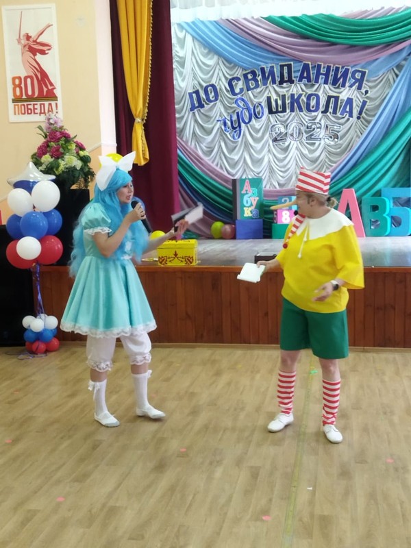 Выпускной в школе раннего развития 26 мая 2025 "Вперёд, к новым знаниям!" под таким названием прошел 24.05.2025 г. выпускной утренник в школе раннего развития дома детского творчества. К ребятам на праздник пришли герои из сказки Буратино и Мальвина, которые на протяжении всего мероприятия проверяли готовность дошкольников к обучению в школе. Они провели для ребят урок английского языка, чтения, математики, русского языка и музыки. За отличные знания детей, Буратино раскрыл свою тайну золотого ключика и открыл им волшебный сундучок с подарками для выпускников. Всем ребятам были вручены свидетельства о успешном обучении в школе раннего развития. В конце мероприятия состоялся праздничный флешмоб.